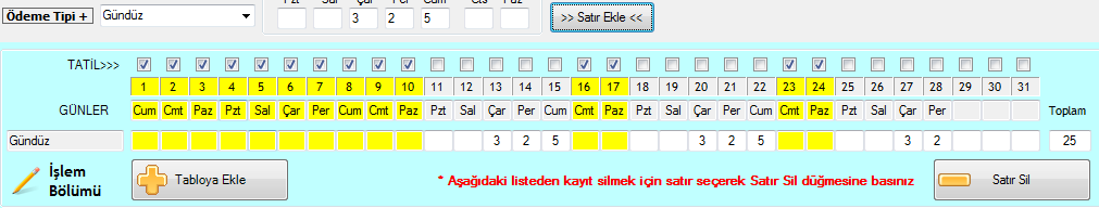 Personel Ek Ders Haftalık Tahakkuk Ekranı